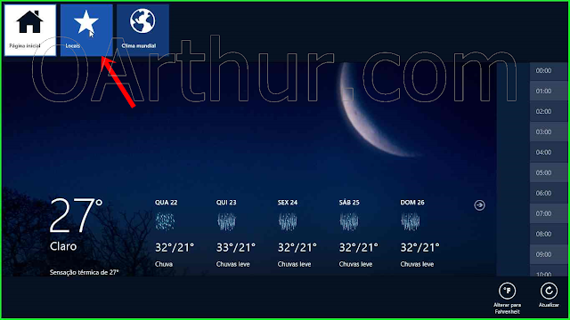Agora no seu windows 8 é possível obter toda previsão do tempo de sua cidade.
