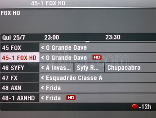 Alguns canais HD da Sky, possuem sua programação diferente do atual SD.