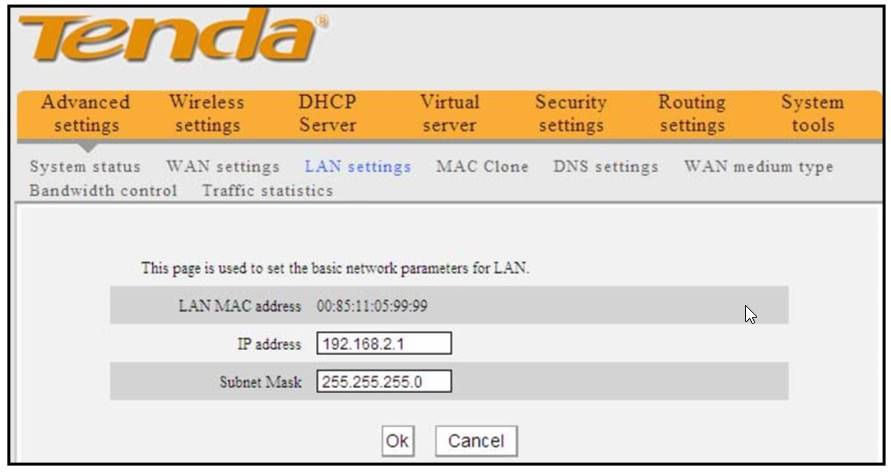 Advanced settings > Lan Settings, e altere o IP Address para 192.168.3.1